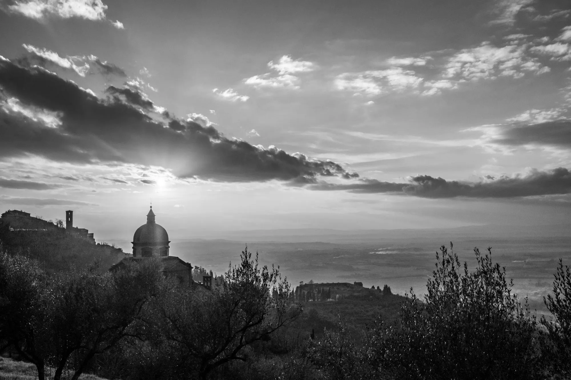 Contrary to expectation, I don’t think the limits hindered the potential for discovery; rather, they enhanced it. The constrained palette captured nuanced aspects of Cortona’s winter light. That light in turn revealed varieties of texture I often overlook in my full-color photographs. My familiar surroundings took on different layers of psychology and meaning, and became new variations of familiar, comfortable themes.